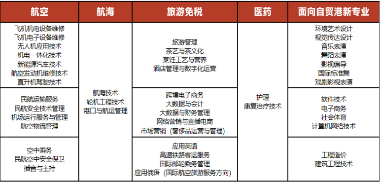 Rooted in the aviation and maritime industries, the university serves free trade zones, aligns with the "Belt and Road Initiative", and pursues integrated development with regional economies through linkage and interaction. Cultivating technical and skilled talents who meet the needs of high-end job clusters in the industrial chain of free trade ports. Adhering to the school motto of "Uphold Integrity and Truth, Learn through Practice and Master Skills", the university upholds the educational philosophy of "upholding the virtues of the Chinese nation, imparting practical skills, fostering professional habits for the aviation and maritime industries, nurturing specialized talents for enterprises, and securing outstanding employment opportunities for graduates".It is committed to developing into “three bases” and “one model” with distinctive characteristics and obvious advantages in the fields of aviation, navigation and tourism specialty, namely, a talent training base for the domestic civil aviation and navigation industry, a talent training base for the tourism, e-commerce, tax exemption and other modern service industries in Hainan Province, and a talent training base for the host Fangda Group,and to becoming a model of running school for large state-owned enterprises in China.