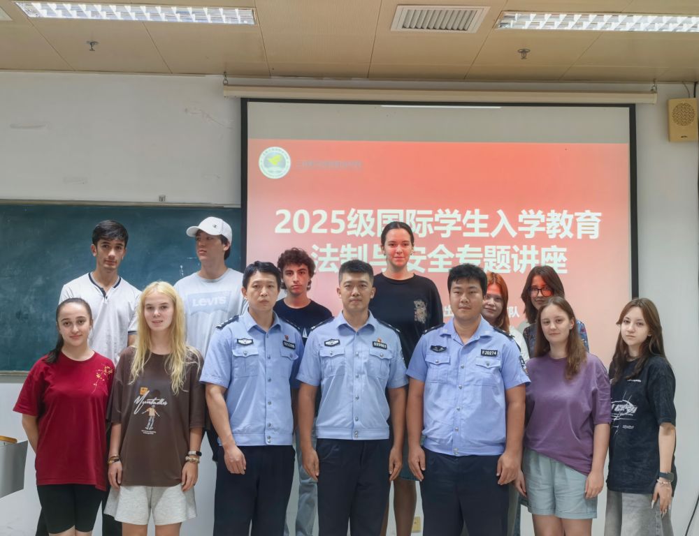 警校联动,开展法制与安全专题讲座:三亚市公安局出入境管理支队副支队长刘恩宏一行莅临学校,为2025级国际学生带来了一场生动的法制与安全专题讲座。刘队长结合实际案例,深入浅出地讲解了签证管理以及禁止非法就业、禁止从事与停留居留事由不相符的活动等法律规定,强调了遵纪守法的重要性,进一步增强了新生的法制观念和安全意识。